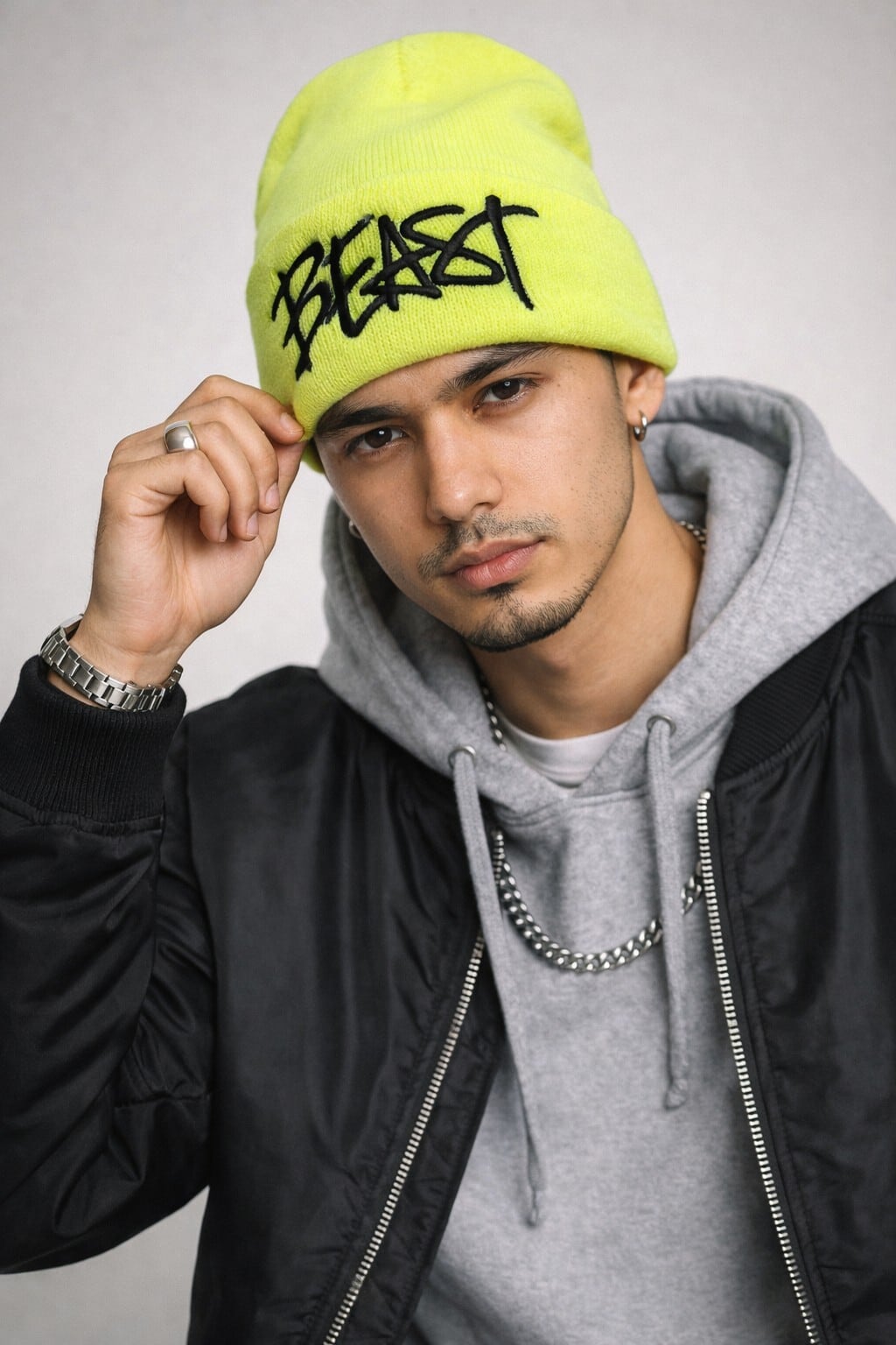 MURAL(ミューラル) BEAST KNIT CAP 刺繍ニットキャップ / LIME ライム